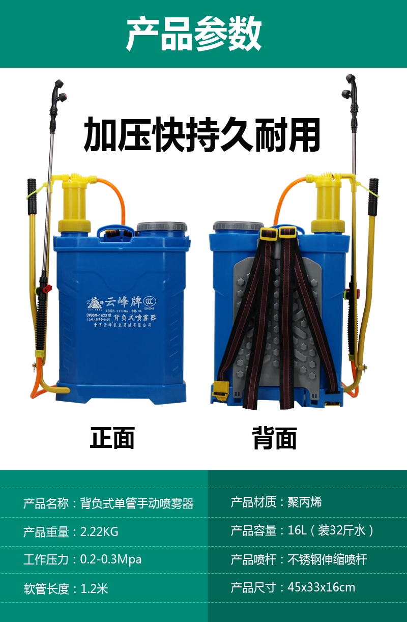首页 >> 产品中心 >> 云峰单管手动喷雾器